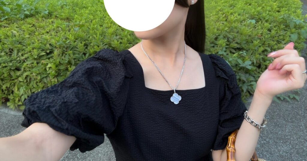 カルセドニーの淡いブルーは光を反射しやすく、首元にほのかな明るさをもたらしてくれます。肌がワントーン明るく見えて、くすみが気にならなくなる感覚。これは、イエベ春にとって大きなポイントだと思います。
