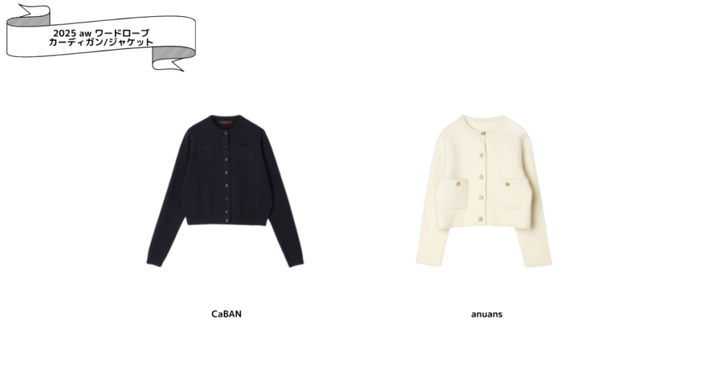 残った冬服は、着用シーンとカラーの重なりをチェック。